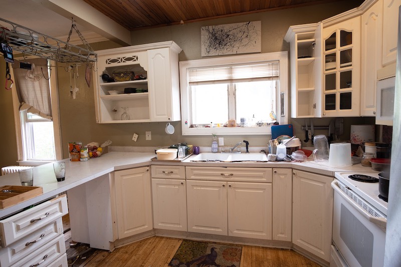 Cluttered kitchen before modern redesign transformation - Fargo, ND.